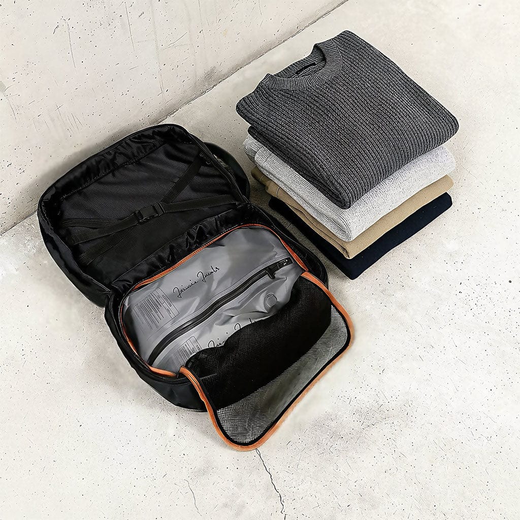 Realizzata su misura per lo zaino Jaimie Jacobs, si adatta perfettamente al compartimento principale. Allo stesso tempo, la borsa sottovuoto si inserisce perfettamente nella maggior parte delle valigie e delle borse da viaggio.